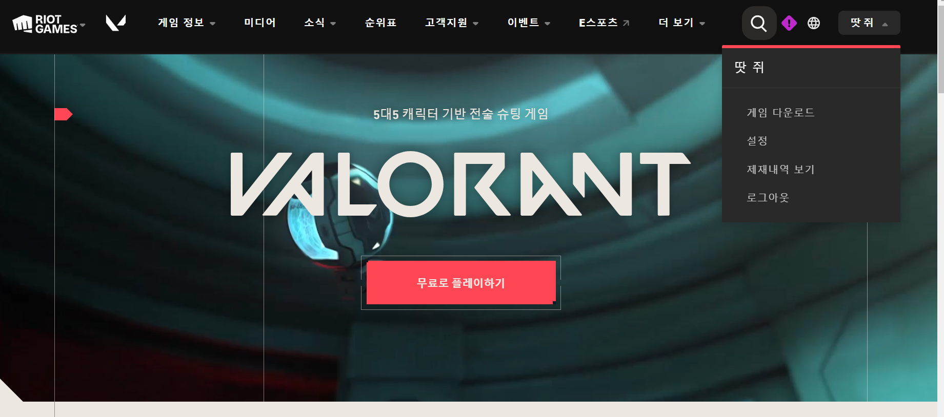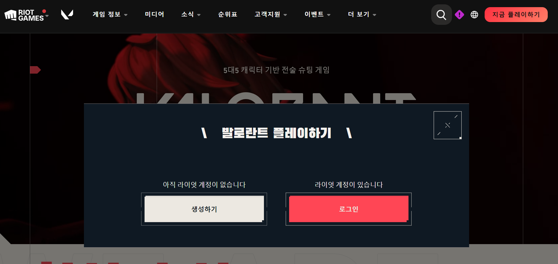 1. 발로란트 홈페이지에 접속하 로그인하기