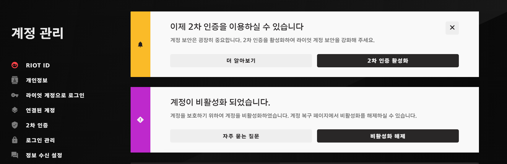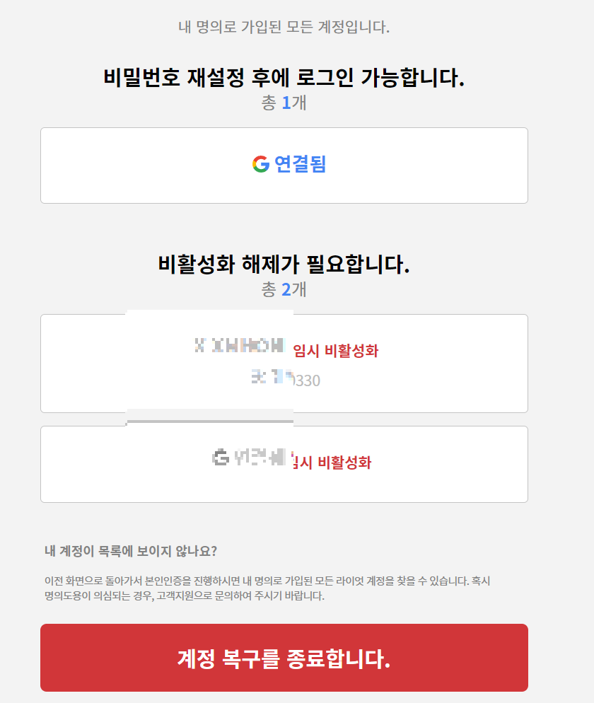 -> 계정이 비활성화 되었어요. 클릭