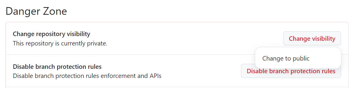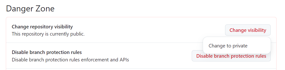 change to private를 누르시면 몇번의 경고 창이 나옵니다. 넘기시면 요기까지 올 수 있습니다.