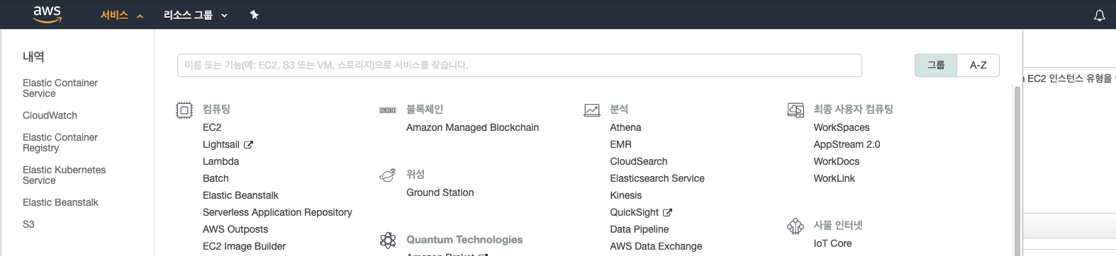1 ) 서비스 > Elastic Container Service 클릭 (ecs로 검색)