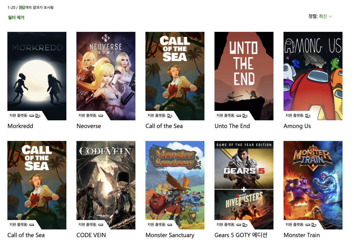 게임 패스에는 392개의 게임이 등록되어 있다.