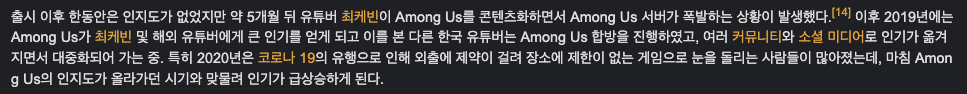 눈을 돌리는 사람들이 많아졌는데, 마침 Among Us의 인지도가 올라가던 시기와 맞물려 인기가 급상승하게 된다.