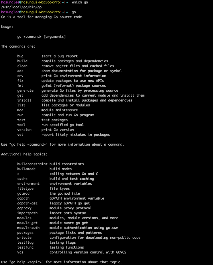 추가 적으로 go env 명령어를 통해 go 환경 설정이 보이는지 확인해보는 것도 좋다.