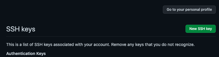 New SSH key 를 버튼을 눌러 신규 키를 등록한다.